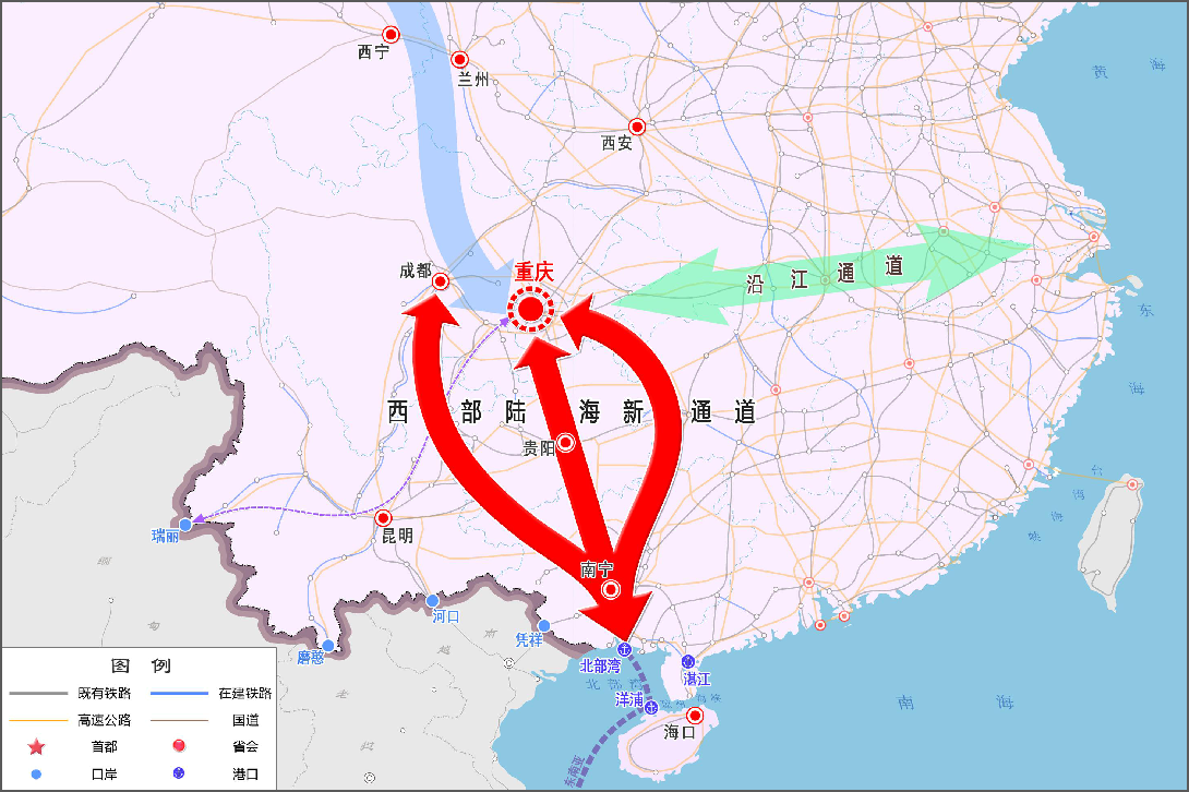 重要樞紐。著力打造國(guó)際性綜合交通樞紐,充分發(fā)揮重慶位于“一帶一路”和長(zhǎng)江經(jīng)濟(jì)帶交匯點(diǎn)的區(qū)位優(yōu)勢(shì),建設(shè)通道物流和運(yùn)營(yíng)組織中心;發(fā)揮成都國(guó)家重要商貿(mào)物流中心作用,增強(qiáng)對(duì)通道發(fā)展的引領(lǐng)帶動(dòng)作用。建設(shè)廣西北部灣國(guó)際門戶港,發(fā)揮海南洋浦的區(qū)域國(guó)際集裝箱樞紐港作用,提升通道出海口功能。
