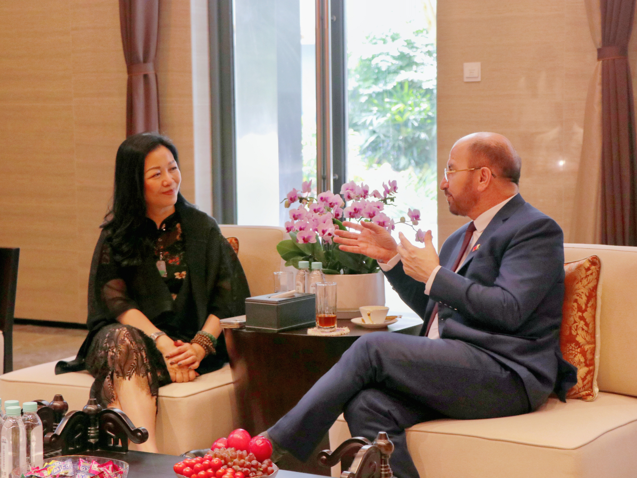 趙海燕董事長與薩達(dá)爾· 穆罕默德代理總領(lǐng)事在匯聚中心合影