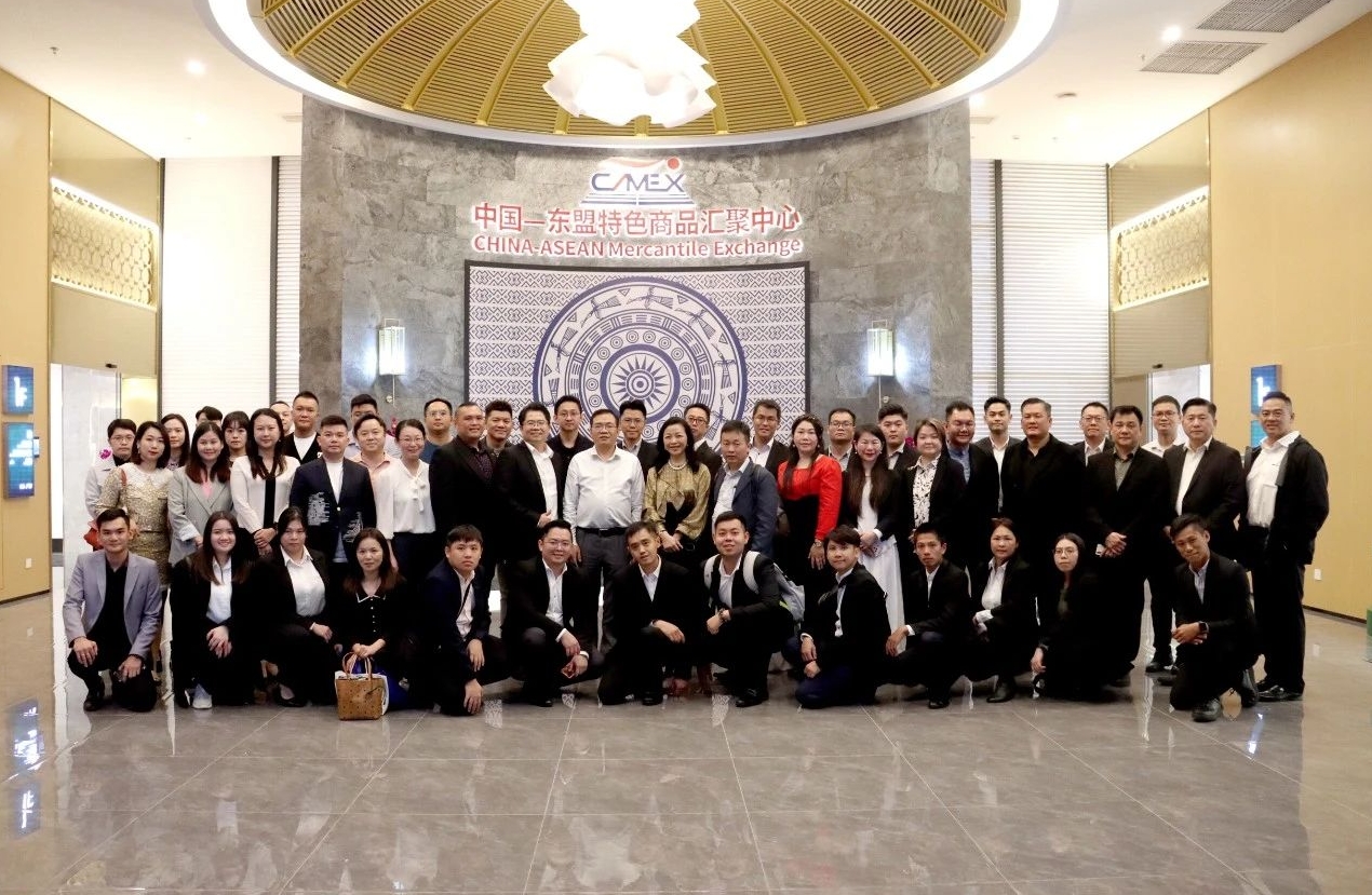 交流活動期間,在廣西壯族自治區(qū)僑聯(lián)黨組成員、副主席秦偉鵬的帶領(lǐng)下,馬來西亞華裔青年一行于11月27日來到中國—東盟特色商品匯聚中心(簡稱“匯聚中心”)進(jìn)行實(shí)地參觀與調(diào)研。廣西新中產(chǎn)業(yè)投資有限公司、中國—東盟特色商品匯聚中心董事長趙海燕熱情接待了華裔青年一行。