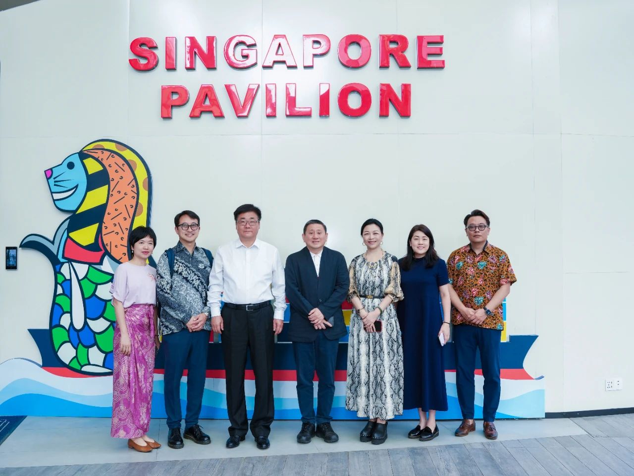 步入?yún)R聚中心,陳海泉大使便被新加坡展館門口的魚尾獅所吸引,特意駐足拍攝。進(jìn)入展館后,考察組沉浸式體驗(yàn)了璀璨星空走廊、垂直綠化的花園城市與組屋街區(qū)等場(chǎng)景,紛紛表示很開心能在廣西看到一個(gè)多維度呈現(xiàn)“獅城”獨(dú)特風(fēng)貌的地方,漫步其中恍若回到新加坡,倍感親切。同時(shí),考察組充分認(rèn)可了匯聚中心線上線下相結(jié)合的創(chuàng)新理念,并就未來在經(jīng)貿(mào)、物流等領(lǐng)域的合作與匯聚中心團(tuán)隊(duì)進(jìn)行了交流并達(dá)成共識(shí)。