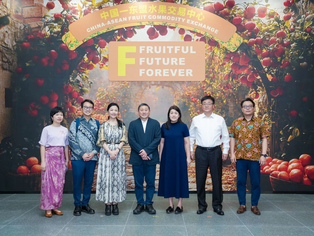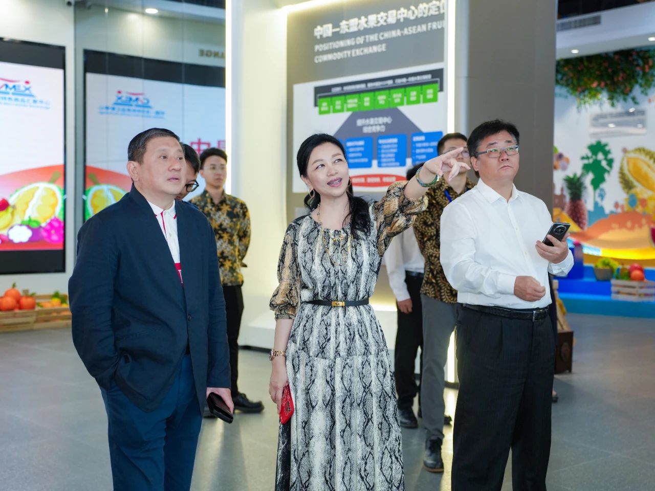考察組還走進(jìn)水果交易中心展廳,就中國與東盟水果貿(mào)易情況進(jìn)行了溝通交流。陳海泉大使表示,此次到訪認(rèn)識(shí)到了中國南北方水果的差異,也了解了廣西作為中國水果第一大省區(qū)的獨(dú)特優(yōu)勢(shì),在廣西建設(shè)水果交易中心大有可為。新加坡雖不是水果主要生產(chǎn)國,但依托世界重要的轉(zhuǎn)口港基礎(chǔ)設(shè)施及先進(jìn)的冷鏈物流體系,可在水果精深加工、先進(jìn)保鮮技術(shù)等方面進(jìn)行深化協(xié)作,希望借助水果交易中心,高效銜接中國與東盟水果產(chǎn)業(yè)鏈資源,助推更多優(yōu)質(zhì)果品通過新加坡更好地走向國際,共享全球廣闊市場(chǎng)。