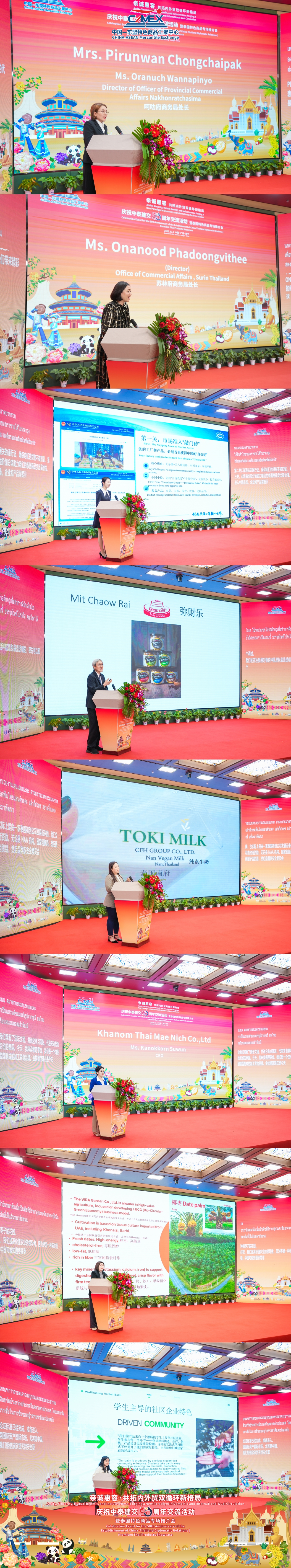 趙海燕董事長(zhǎng)在致辭中介紹,匯聚中心依托十八個(gè)獨(dú)具創(chuàng)新特色的沉浸式文化主題展館,以文化匯商家,以商貿(mào)聚合作,吸引了眾多國(guó)內(nèi)外政商團(tuán)體前來考察洽談,成為了外國(guó)商家進(jìn)入中國(guó)市場(chǎng)的首站以及中國(guó)商家拓展海外市場(chǎng)的窗口!同時(shí),目前正積極推進(jìn)建設(shè)的中國(guó)—東盟(南寧)水果交易中心,將重點(diǎn)服務(wù)中國(guó)與東盟之間的水果貿(mào)易。未來,匯聚中心將與泰國(guó)商業(yè)部等相關(guān)部門攜手合作,融合泰國(guó)作為東盟重要的水果及農(nóng)產(chǎn)品出口國(guó)的優(yōu)勢(shì),通過AI技術(shù)賦能貿(mào)易創(chuàng)新合作,助力雙邊企業(yè)共同開拓中國(guó)與東盟市場(chǎng)。