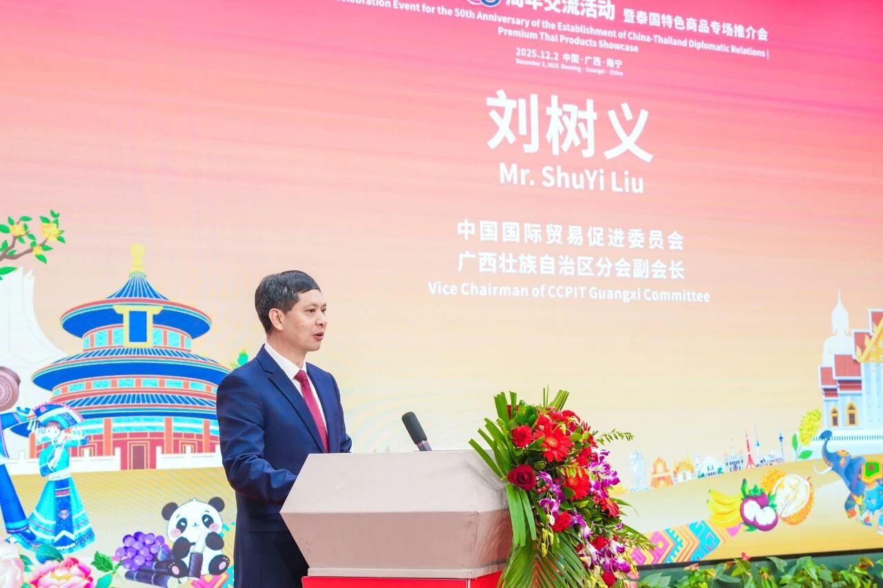 劉樹義副會(huì)長(zhǎng)在致辭中表示, 廣西始終把深化桂泰合作作為服務(wù)國(guó)家戰(zhàn)略的重要抓手,穩(wěn)步把“中泰一家親”的理念轉(zhuǎn)化為實(shí)實(shí)在在的合作成果。他希望以中泰建交五十周年為契機(jī),深挖中國(guó)—東盟自貿(mào)區(qū)3.0版和RCEP的政策紅利,以本次活動(dòng)為起點(diǎn),以“特色商品”為紐帶,推動(dòng)更多泰國(guó)水果、香米、手工藝品等特色商品通過廣西的跨境電商平臺(tái)走進(jìn)中國(guó)千家萬戶,同時(shí)也鼓勵(lì)中國(guó)的機(jī)械設(shè)備、電子產(chǎn)品、輕工產(chǎn)品借助泰國(guó)市場(chǎng)輻射整個(gè)東盟。在此基礎(chǔ)上,桂泰合作必將邁上新的高度。