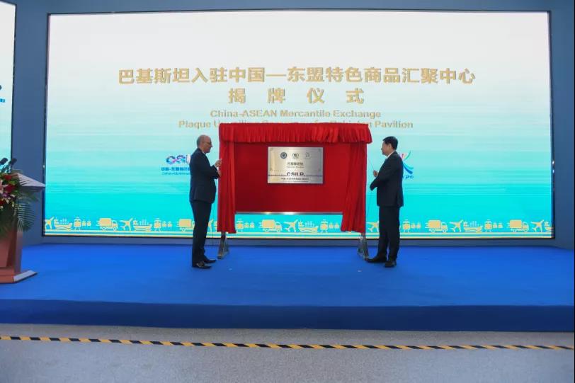 在第18屆中國(guó)—東盟博覽會(huì)盛大開幕之際,9月9日,巴基斯坦入駐中國(guó)—東盟特色商品匯聚中心揭牌儀式在廣西南寧中新南寧國(guó)際物流園舉行,廣西壯族自治區(qū)黨委常委、南寧市委書記王小東,巴基斯坦駐華大使莫因·哈克等共同出席揭牌儀式并致辭,對(duì)巴基斯坦在廣西南寧設(shè)置展示館表示祝賀。