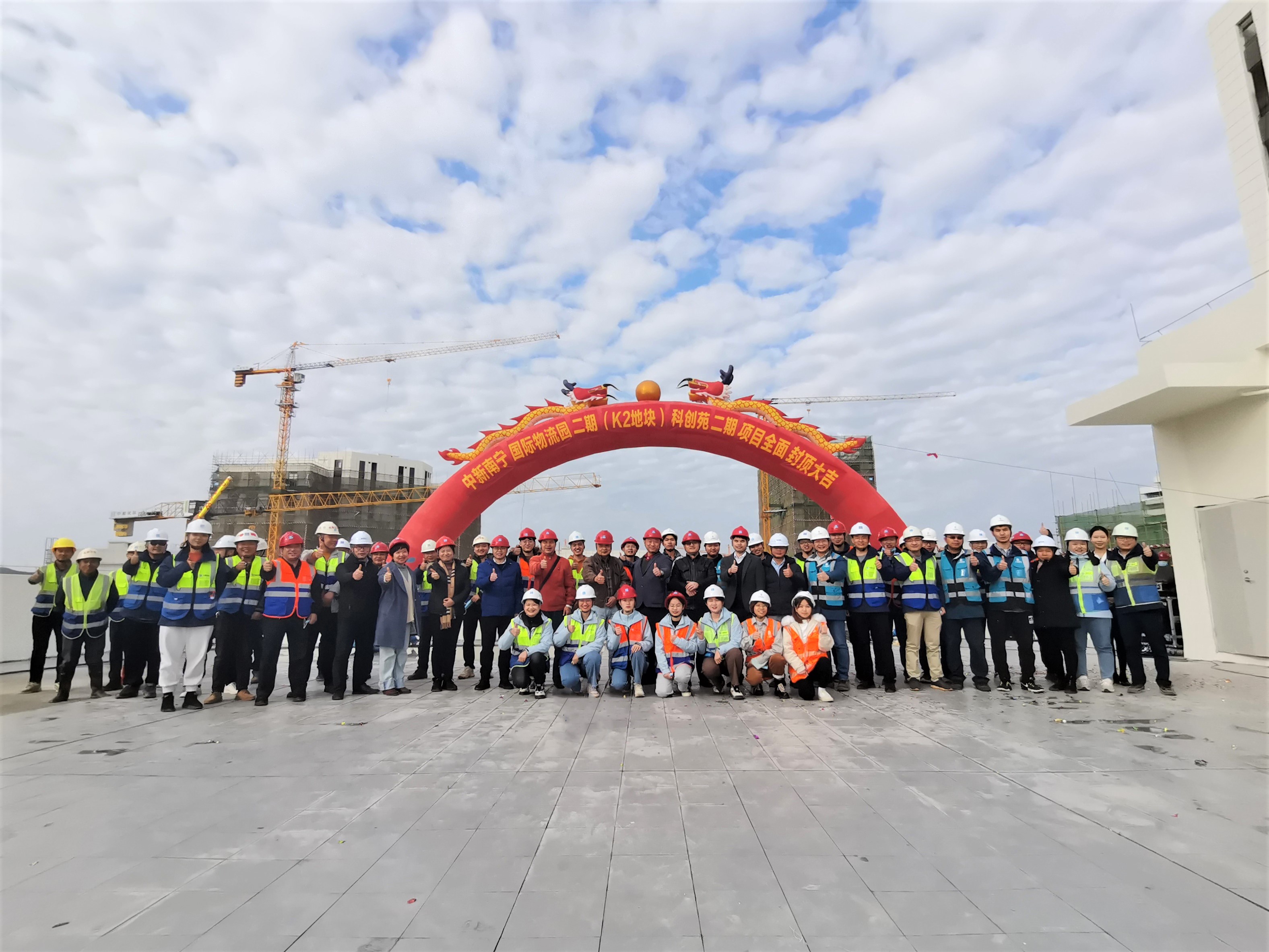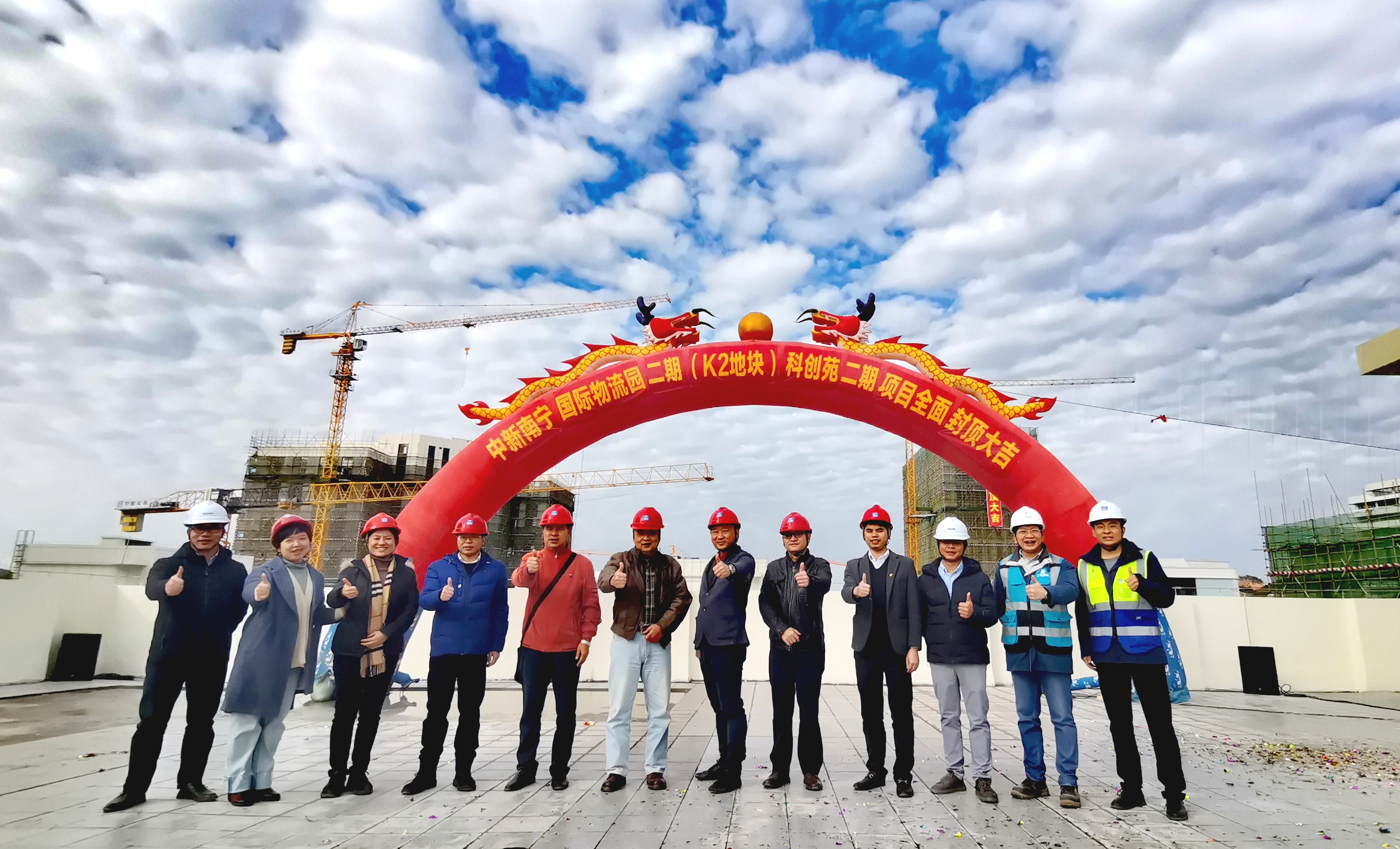 2022年1月11日,中新南寧國際物流園(以下簡稱“中新園”)二期(K2地塊)科創(chuàng)苑二期項目全面封頂,標志著中國—東盟特色商品匯聚中心的產(chǎn)業(yè)規(guī)劃施工工程進入新的階段。南寧綜保區(qū)管委會、廣西新中產(chǎn)業(yè)投資有限公司、項目工程施工總包方和各參建方共同參加了此次封頂儀式。
