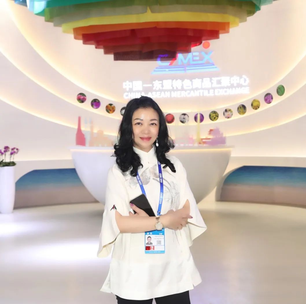 趙海燕在中國(guó)—東盟特色商品匯聚中心留影